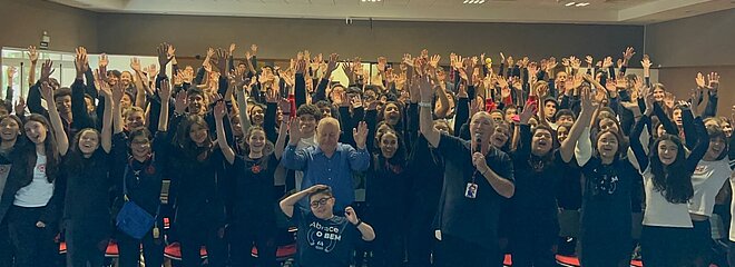 Sobrevivente de campo de concentração palestra para os alunos do Colégio Mackenzie em São Paulo
