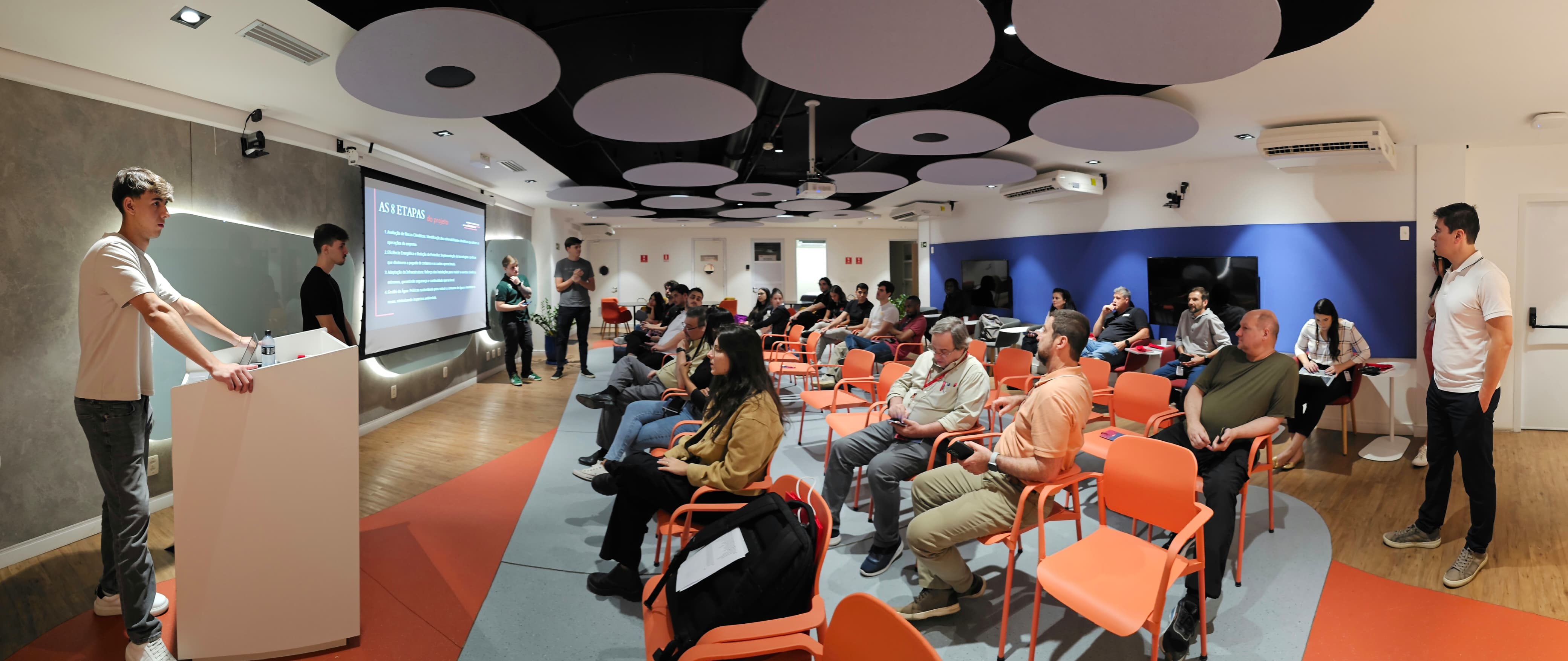 Foram 16 participantes da graduação e um do mestrado que conheceram mais sobre a área de atuação da Dow. Em seguida, fizeram um tour pelo centro de inovação e os laboratórios, finalizando a visita com apresentação de seus projetos e as considerações dos gestores.