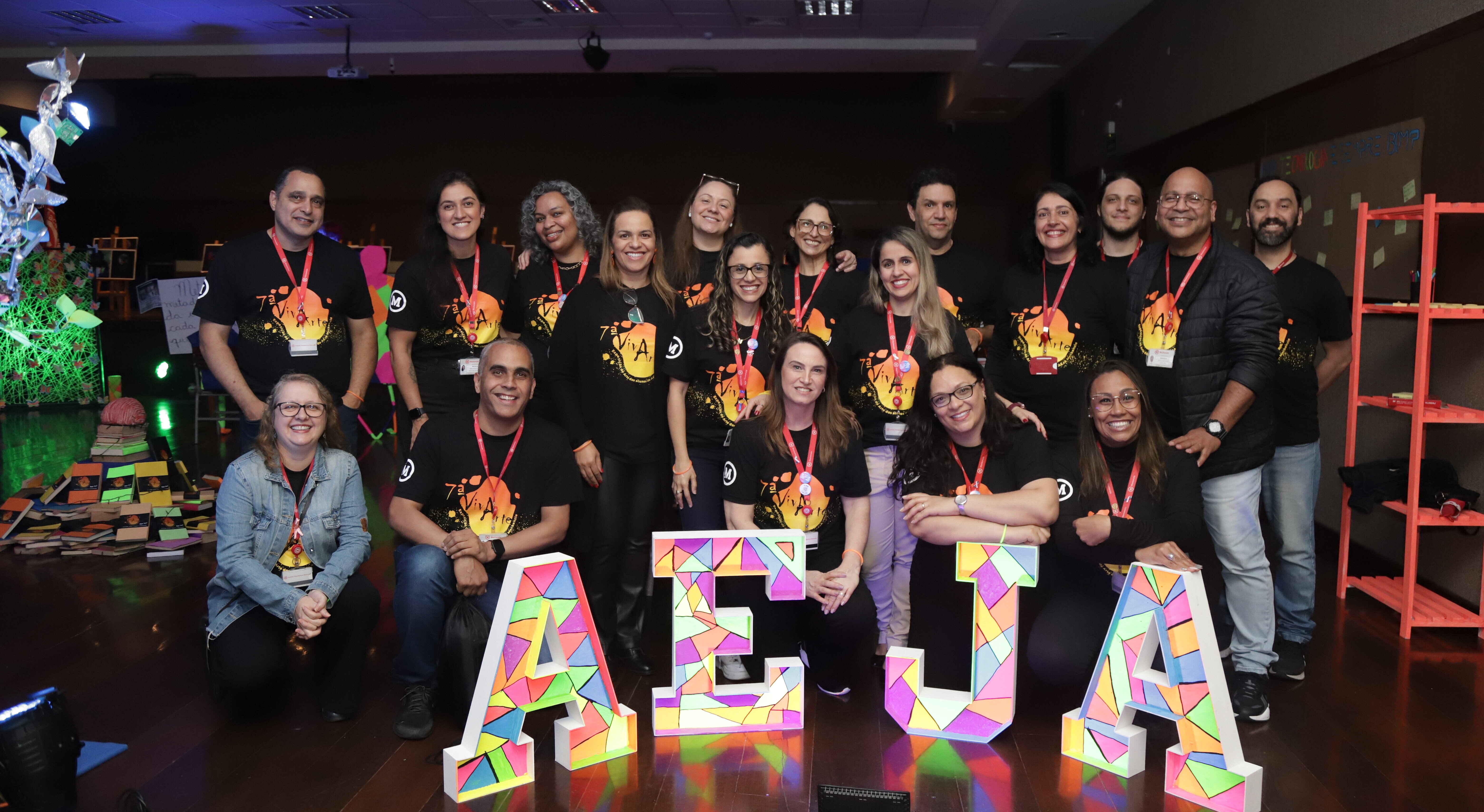Entre os participantes, a aluna Miriam Alves, de 44 anos, do 8ºC, destacou o impacto pessoal da experiência. “Foi experiência sensacional para mim. Esse tema, ‘Haja Luz’, com a luz neon que nos causa emoções e sentimentos, representa a energia pulsante da vida. E sobre a inteligência artificial, ela está invadindo todos os espaços, inclusive a educação. É uma ferramenta importante, mas também perigosa. Por isso, acho que a AEJA é muito importante, porque nos dá vivência diária, contínua, e experiências incríveis com professores humanos, que atendem nossas necessidades no ensino”, afirmou.
