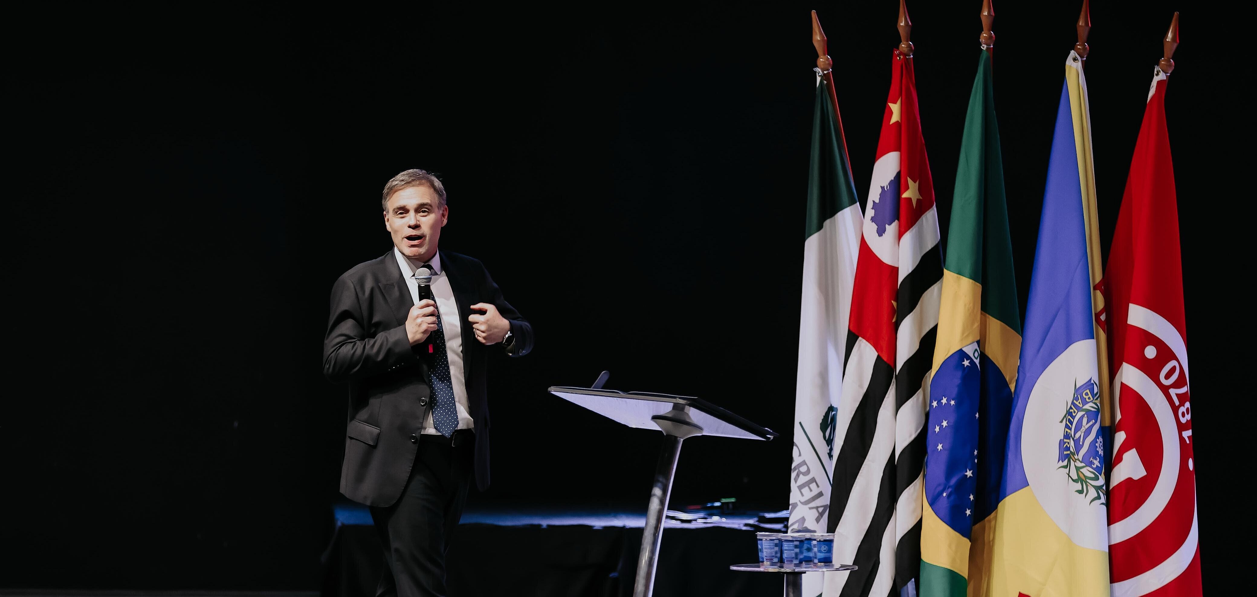 O reverendo José Roberto Rodrigues Coelho, capelão da Educação Básica do Colégio Presbiteriano Mackenzie (CPM), representando o chanceler do Mackenzie, Robinson Grangeiro Monteiro, realizou o momento devocional da noite.