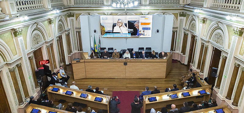 Além da vereadora Noemia Rocha e do pastor Hilário, a mesa da cerimônia foi composta pelo tenente-coronel Mario Ricardo do Amaral, diretor-geral do Hospital da Polícia Militar do Paraná; Cícero Manoel Bezerra, presidente do diretório da Sociedade Bíblica do Brasil (SBB) – Paraná; Dom Diamantino Prata de Carvalho, provedor da Irmandade da Santa Casa de Misericórdia de Curitiba (ISCMC); Érika Cecconi Borges Massa Checan, capelã titular do Hospital do Rocio (ELO Capelania); pastor Aristides Vieira, representando o pastor Wagner Tadeu dos Santos Gaby, presidente da Igreja Evangélica Assembleia de Deus em Curitiba; e capelã Olga Maria Paiva, coordenadora do Grupo Gestor da Rede de Capelães e Capelanias na Saúde de Curitiba e Região.