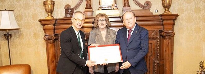 Na ocasião, a professora recebeu das mãos do reitor da Universidade de Salamanca, Ricardo Rivera Ortega, seu diploma de doutora pela Instituição, obtido no marco de convênio de cotutela e dupla titulação entre Salamanca e a UPM. “É uma honra voltar a esta milenar instituição como palestrante e ser surpreendida com a entrega do meu título pelo reitor e por minha orientadora, a professora Pilar”, destacou a especialista.
