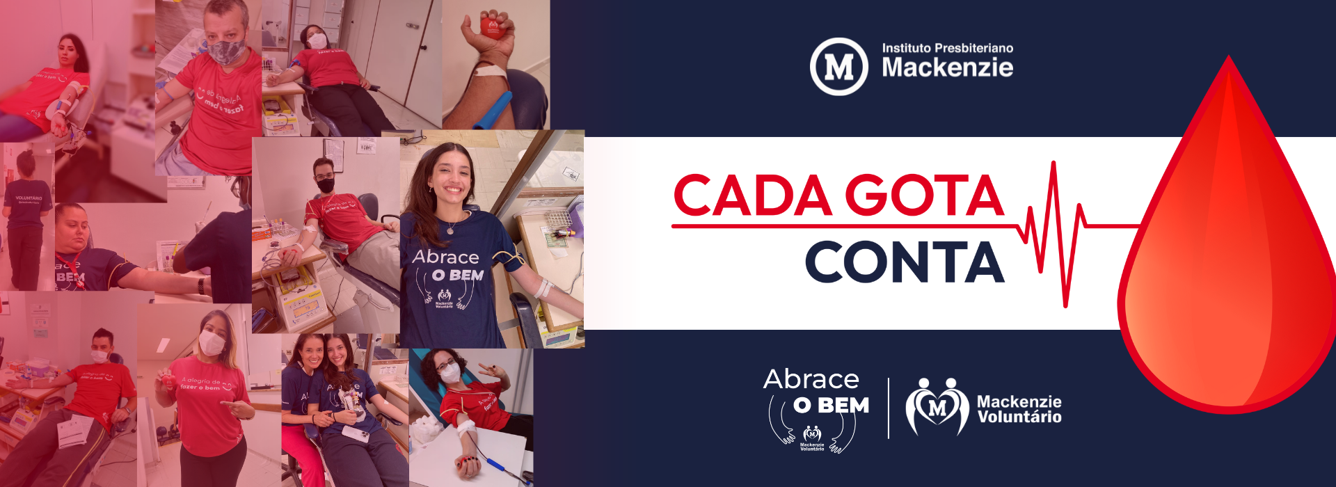 Sensível a essa necessidade, o Mackenzie, por meio do projeto Cada Gota Conta, vinculado ao Programa Mackenzie Voluntário, busca promover a cultura da doação de sangue, incentivando a mudança de hábito de doadores eventuais para doadores regulares, além de auxiliar no suprimento direto dos bancos de sangue.