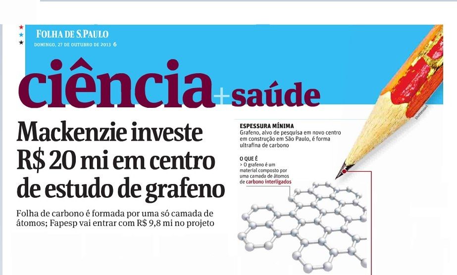 A Folha de S.Paulo de domingo, dia 27 de outubro, abriu seu caderno de Ciência + Saúde destacando o investimento que a Universidade Presbiteriana Mackenzie (UPM) está fazendo na construção do Mackgrafe – Centro de Pesquisas Avançadas em Grafeno, Nanomateriais e Nanotecnologia. O jornal atesta que essa pesquisa, com “p” maiúsculo, é o maior investimento que uma instituição de ensino superior privada faz com recursos próprios, provando que o Mackenzie passa a ser pioneiro desse campo no Brasil.