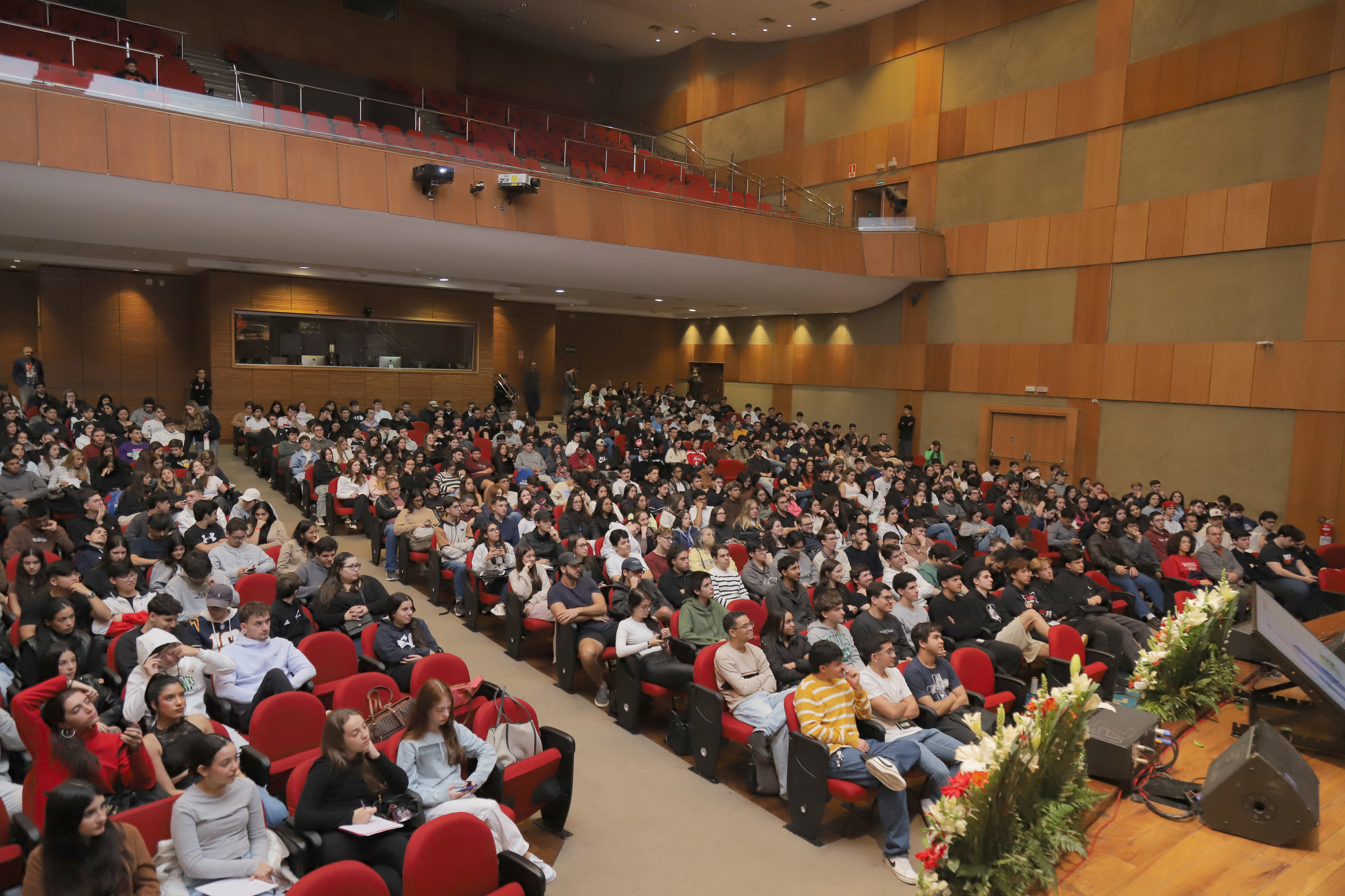 Na manhã desta quarta-feira, 14 de maio, o Mackenzie Business Week 2025 recebeu a palestra da marca Lindt, referência mundial em chocolates premium. O evento, promovido pelo Centro de Ciências Sociais e Aplicadas (CCSA) da Universidade Presbiteriana Mackenzie (UPM), em parceria com a Empresa Júnior Mackenzie Consultoria, contou com a participação do CEO da Lindt no Brasil, Walter Angst, e da diretora de marketing da marca, Renata Sato.