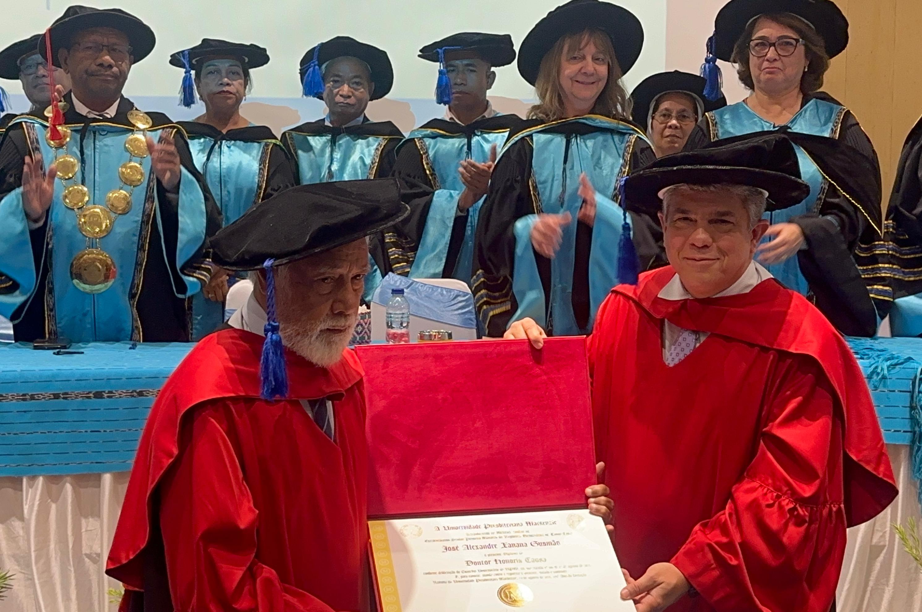 A Universidade Presbiteriana Mackenzie (UPM) concedeu nesta sexta-feira, 29 de agosto, o título de Doutor Honoris Causa ao atual presidente do Timor Leste, José Ramos-Horta, vencedor do Prêmio Nobel da Paz em 1996, e ao primeiro-ministro e ex-presidente do país, Xanana Gusmão. A outorga da homenagem contou com a presença do reitor da UPM, Marco Tullio Castro Vasconcelos, e da coordenadora de Programas de Pós-Graduação Stricto Sensu, Regina Helena Pires de Brito, realizada na Universidade Nacional do Timor Leste (UNTL).