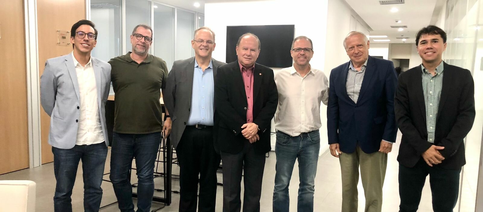 Participaram da reunião o diretor geral do MackGraphe, Benedito Guimarães Aguiar Neto; o gerente de Projetos do MackGraphe, Marcelo Silva Oliveira; os diretores da Alupar, José Luiz Pereira e João Eduardo Pinheiro; e a aquipe de inovação da Alupar.