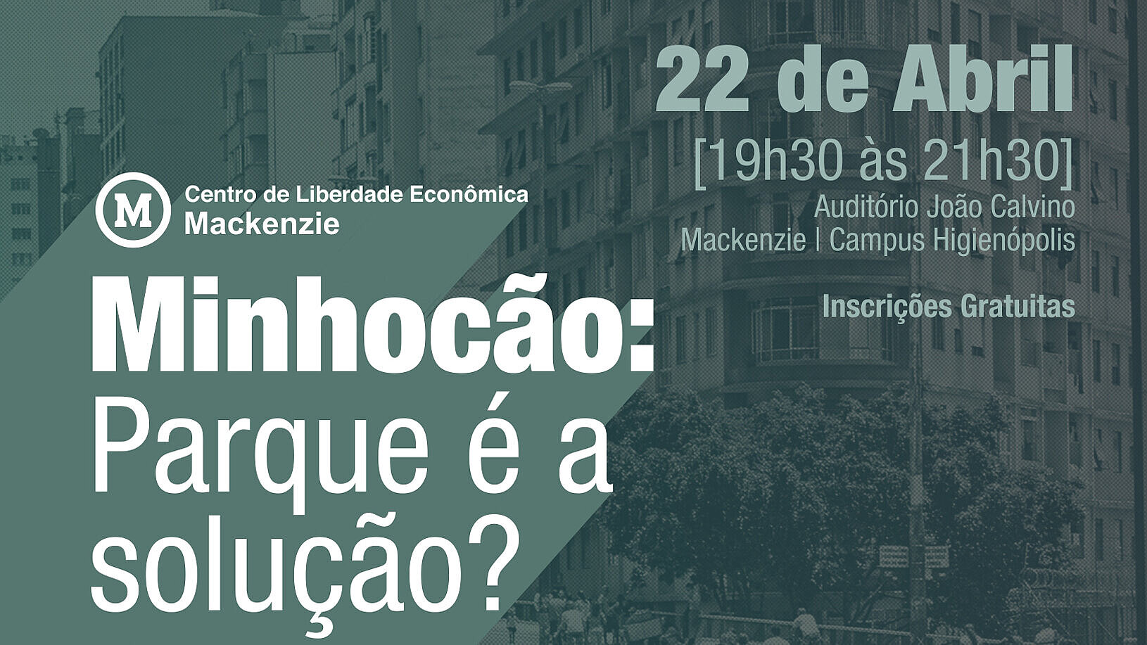 O Centro Mackenzie de Liberdade Econômica discutirá o tema no dia 22 de abril, segunda-feira, em um evento gratuito no auditório João Calvino. As inscrições são gratuitas e podem ser feitas pelo endereço www.bit.do/parqueminhocao.