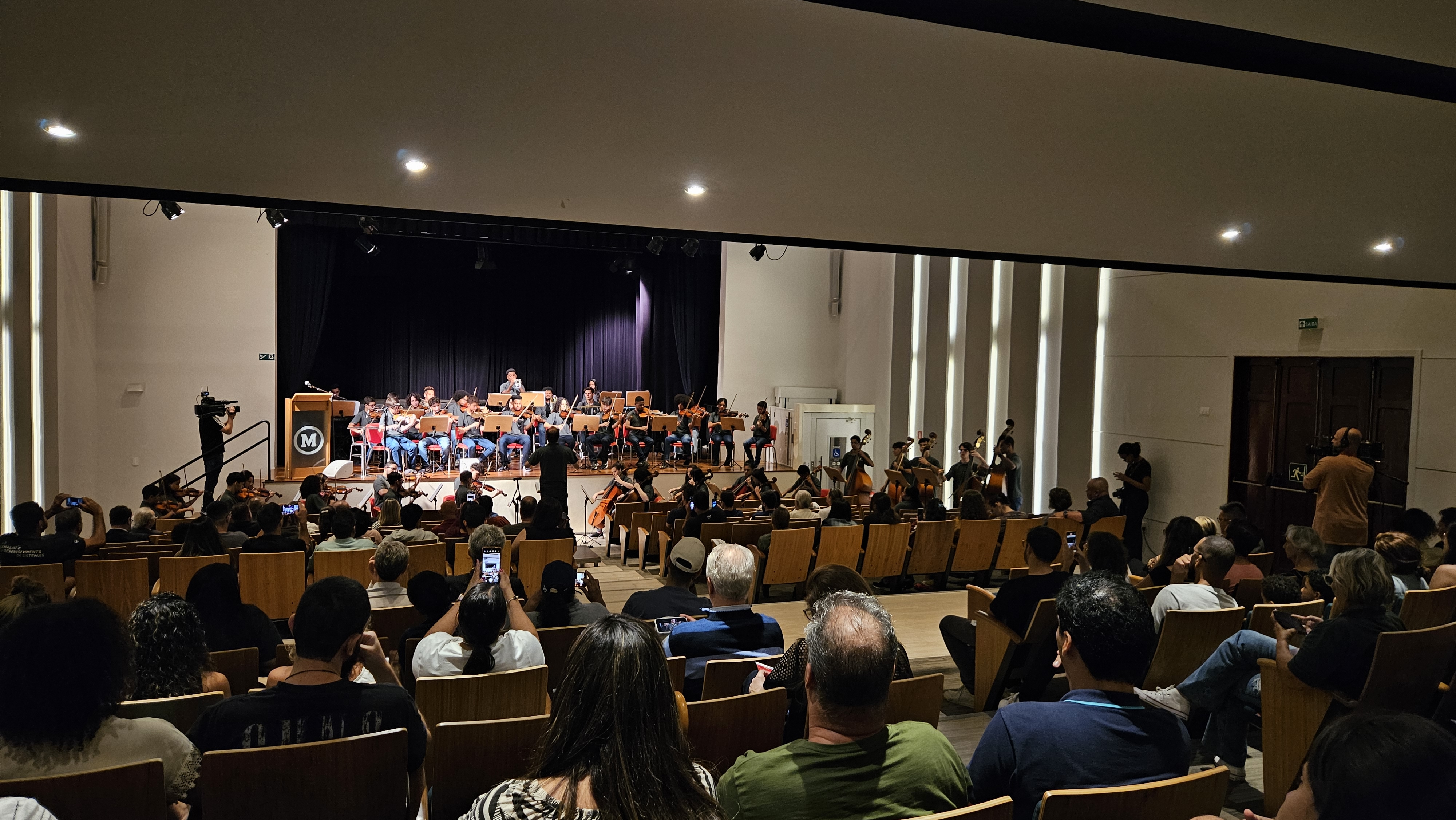 Foi um momento emocionante, de anúncio da chegada do Natal. A orquestra, formada por crianças e adolescentes, embalou o público com tradicionais canções natalinas, como Ó Noite Santa, Noite Feliz e Oh! Vinde Fiéis, com direito a orquestra completa: violinos, contrabaixo, percussão, violoncelo e metais (instrumentos de sopro como trombone, trompete e trompa). Ao fim, os músicos deixaram de lado os instrumentos e formaram um pequeno coral, que encerrou a apresentação cantando Bate o Sino e Ó Vinde Adoremos.