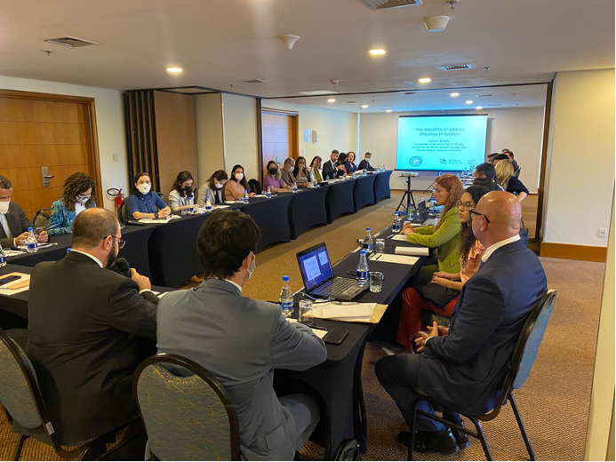O Prof. Ms. Miguel Campo Dall Orto Emery de Carvalho, Coordenador-Geral de Economia 4.0 e Propriedade Intelectual e representante do Ministério da Economia, apresentou os avanços feitos nos últimos anos do que diz respeito à propriedade intelectual no Brasil e à concessão de patentes, reconhecendo que embora uma resposta definitiva para o backlog de análise ainda não tenha sido possível, o governo tem se empenhado em reduzir o tempo nos novos pedidos apresentados. Emery de Carvalho também apresentou a Estratégia Nacional de Propriedade Intelectual, desenhada no âmbito do Grupo Interministerial de Propriedade Intelectual – GIPI.