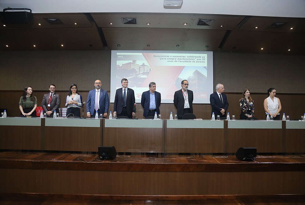 O evento teve como tema Reencontros e encontros: celebrando os “para sempre mackenzistas” nos 70 anos da Faculdade de Direito e contou com uma série de homenagens, a principal delas para todos os integrantes da primeira turma do curso de Direito, formada em 1953, presentes no auditório.