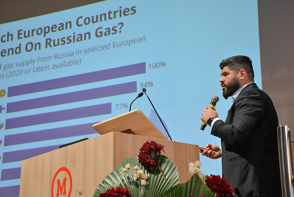 O professor e diplomata Almeida, que participou de forma on-line do evento, de Brasília (DF), tratou a respeito das sanções econômicas que acometem a área do conflito entre Rússia e Ucrânia e a posição do Brasil neste quadro. “Podemos dizer que um dos maiores cerceamentos à liberdade econômica é justamente a guerra. Desde a Liga das Nações, tenta-se interromper o uso da força militar entre os países, utilizando as sanções econômicas, que são outra maneira de cercear a liberdade, uma arma às vezes tida como mais forte que a guerra”, diz.