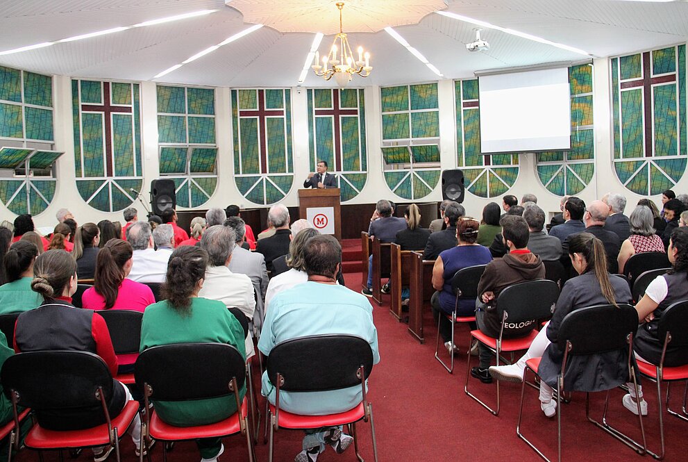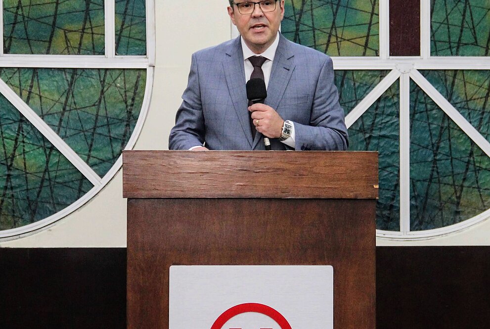 Um culto de gratidão, realizado na capela do HUEM, celebrou o aniversário do Hospital. A pregação do Reverendo Robinson Grangeiro, chanceler do Mackenzie, trouxe palavras de gratidão por tudo de bom que Deus faz em nossas vidas, incluindo a transformação do HUEM sob a gestão do Instituto Presbiteriano Mackenzie (IPM).