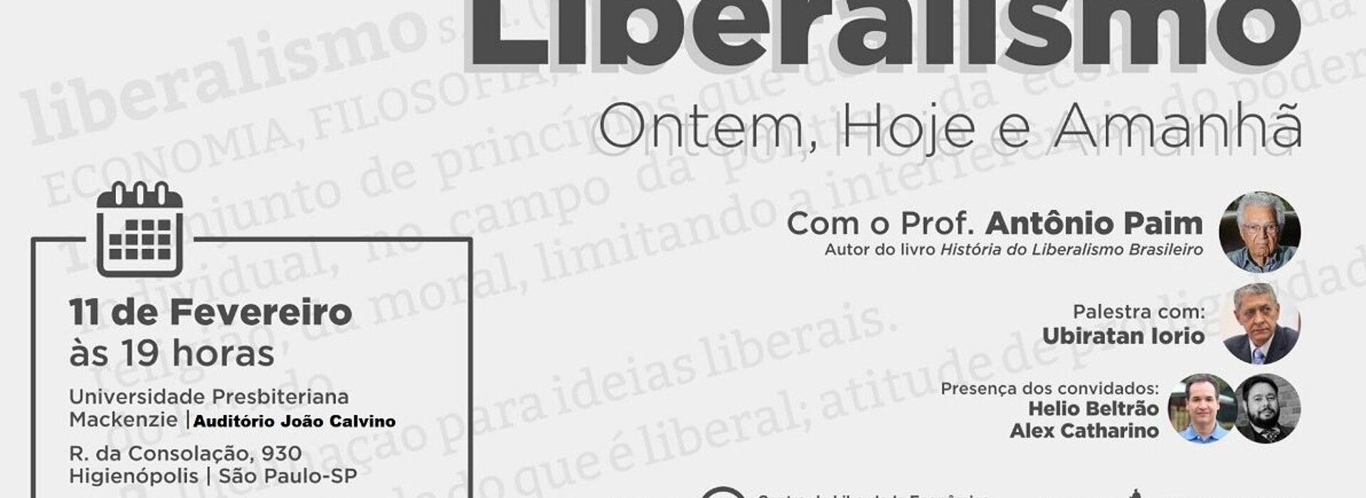 Dia 11 de fevereiro, às 19h, no Campus Higienópolis, auditório João Calvino, será realizado o evento "Liberalismo: ontem, hoje e amanhã" discute a evolução das ideias liberais e traça prognósticos para seu futuro no Brasil. Contará com as palestras dos professores Antônio Paim e Ubiratan Iório, dois dos expoentes do pensamento liberal do país.
