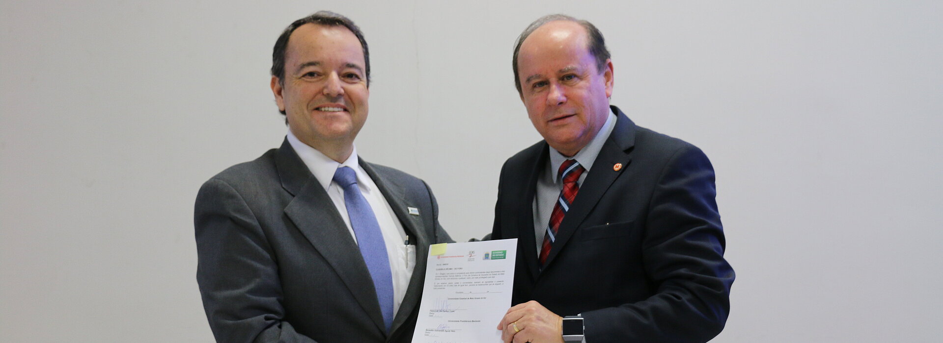 Na segunda-feira, dia 10 de junho, o reitor da Universidade Presbiteriana Mackenzie (UPM), Benedito Guimarães Aguiar Neto, esteve na sede da Universidade Estadual de Mato Grosso do Sul (UEMS), em Dourados, para assinar um convênio para intercâmbio e cooperação técnica, científica e cultural entre as duas instituições.