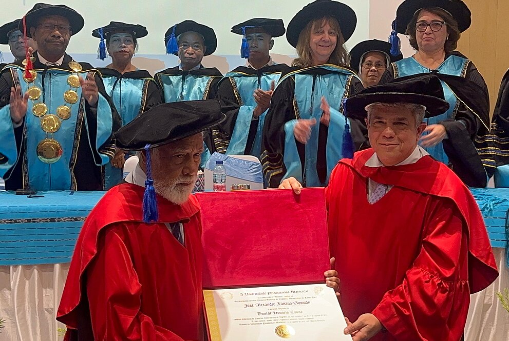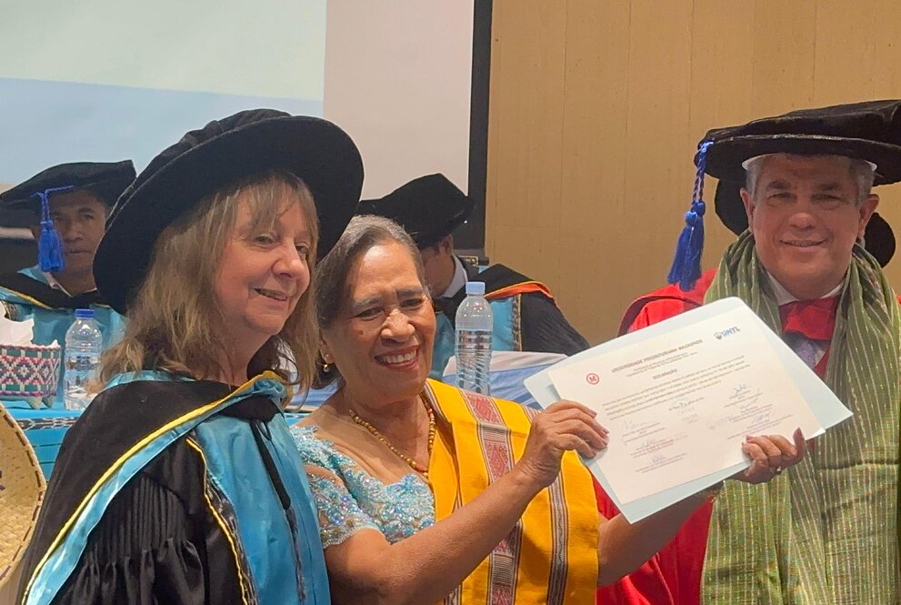A Universidade Presbiteriana Mackenzie (UPM) concedeu nesta sexta-feira, 29 de agosto, o título de Doutor Honoris Causa ao atual presidente do Timor Leste, José Ramos-Horta, vencedor do Prêmio Nobel da Paz em 1996, e ao primeiro-ministro e ex-presidente do país, Xanana Gusmão. A outorga da homenagem contou com a presença do reitor da UPM, Marco Tullio Castro Vasconcelos, e da coordenadora de Programas de Pós-Graduação Stricto Sensu, Regina Helena Pires de Brito, realizada na Universidade Nacional do Timor Leste (UNTL).