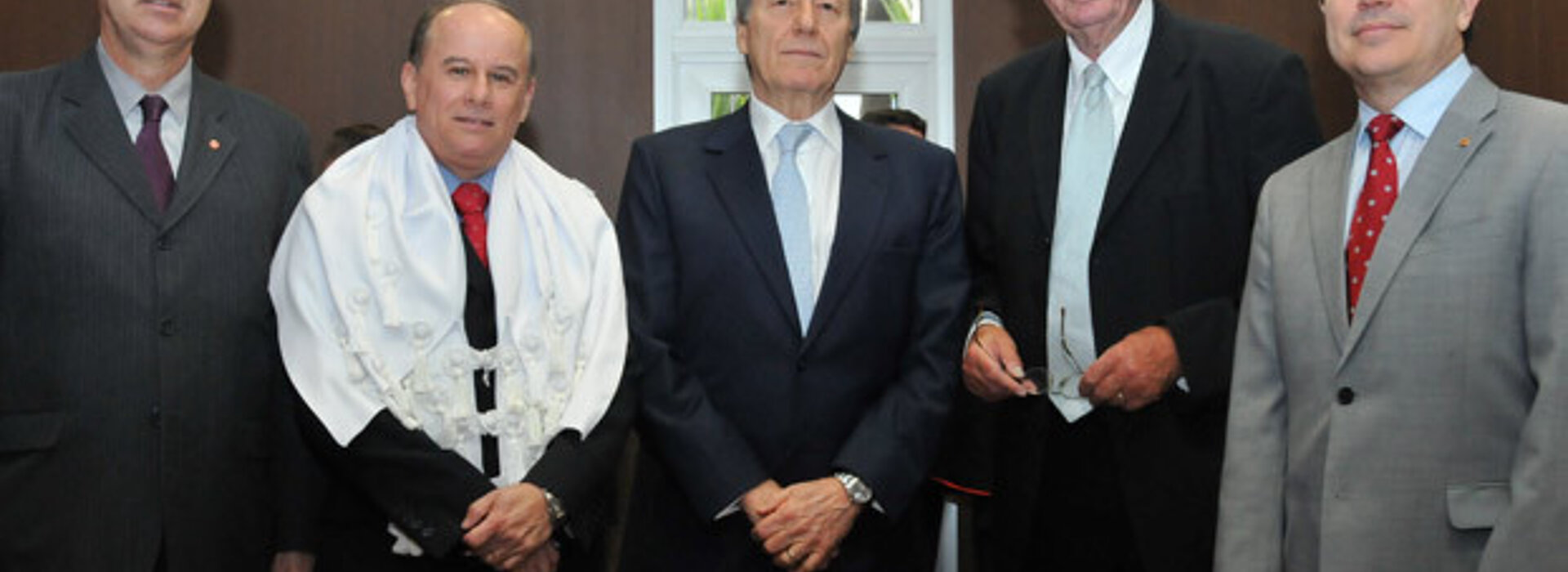 Na foto acima, a partir da esq., José Paulo Fernandes Júnior, diretor de Desenvolvimento e Novos Negócios; Benedito Aguiar, reitor da UPM; ministro Lewandovski, o homenageado Claus Roxin e o presidente do Mackenzie, Maurício Meneses.
