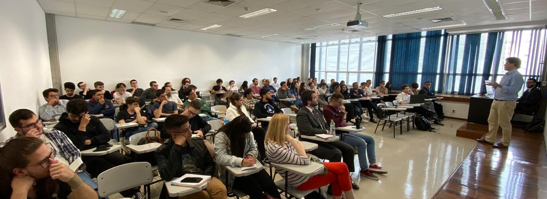O Pesquisador Allan Gallo Antonio fez sua exposição centrada na necessidade de defesa da Liberdade Econômica e os meios pelos quais ela costumeiramente é atacada - tanto no âmbito público quando no âmbito privado. Ao final conversou com alunos e apresentou os trabalhos que têm sido desenvolvidos no CMLE.