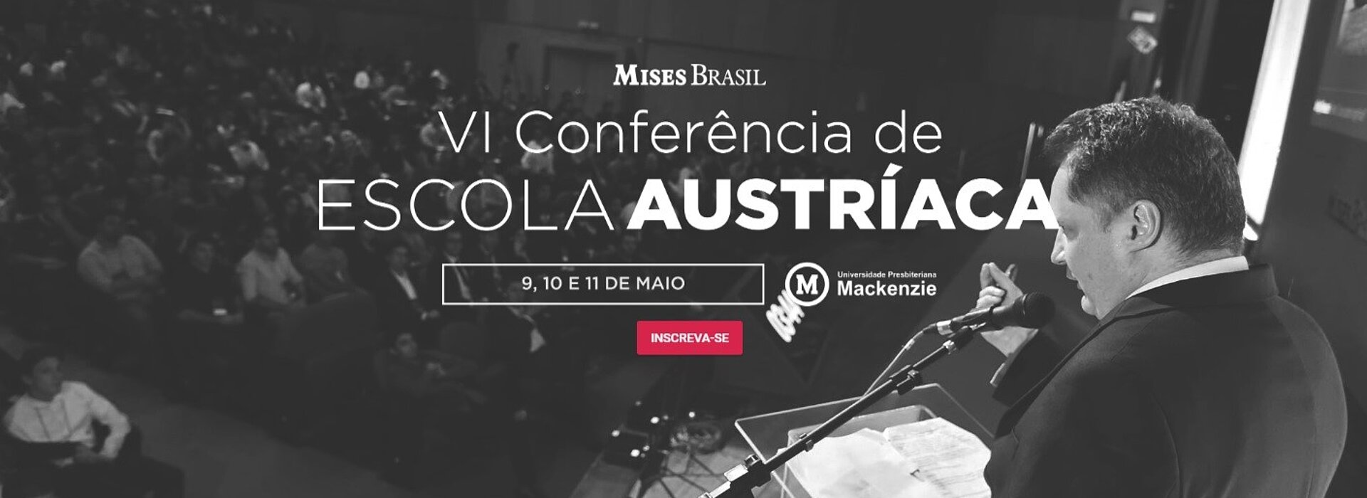 Entre 09 e 11 de maio ocorre a VI Conferência de Escola Austríaca, evento tradicional do Instituto Mises Brasil, que comemora suas atividades com palestras de diversos especialistas que se apresentarão no campus Higienópolis do Mackenzie, em parceria com o Centro Mackenzie de Liberdade Econômica (CMLE) da Universidade Presbiteriana Mackenzie (UPM). A Conferência já se consolidou como o maior e mais importante evento da Escola Austríaca do país, e conta com seus maiores representantes internacionais e nacionais.