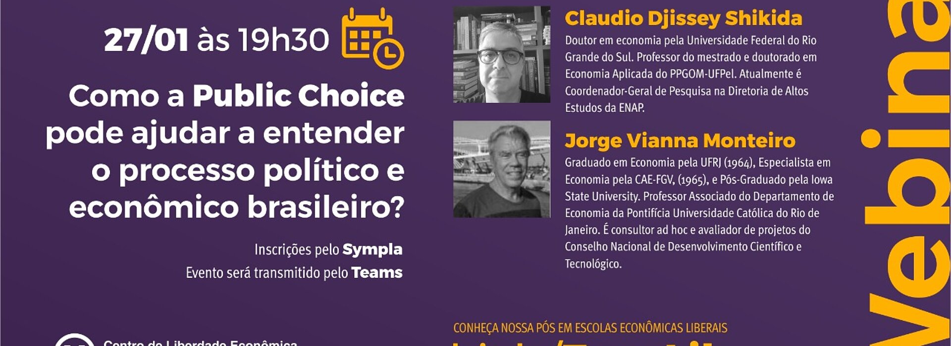 No último dia 27 de janeiro, o Centro promoveu o webinar: Como a Public Choice pode ajudar a entender o processo político e econômico brasileiro?