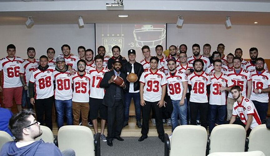 Na última quinta-feira, 20 de julho, o mackenzista Cairo Fernandes Santos, primeiro brasileiro a integrar a National Football League (NFL), liga de futebol americano dos Estados Unidos, veio ao Mackenzie para uma palestra.