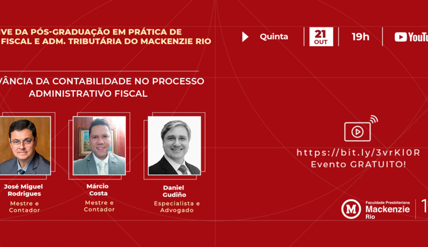 Participe da live da Pós-graduação em Prática de Departamento Fiscal e Administração Tributária do Mackenzie Rio!