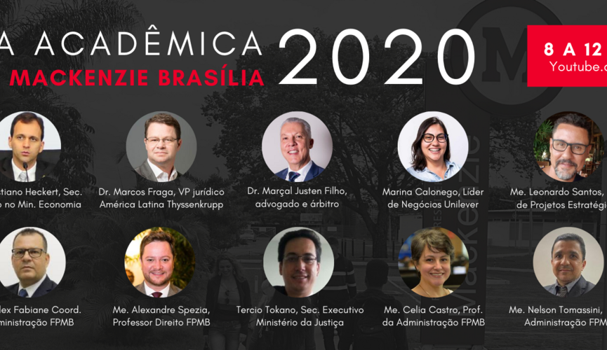 Os desafios profissionais e organizacionais no pós-pandemia serão o foco da próxima Semana Acadêmica da Faculdade Presbiteriana Mackenzie Brasília (FPMB), marcada para a semana de 08 a 12 de setembro. O evento, que avaliará as perspectivas para as atuações de Administradores e Operadores do Direito, contará com a participação profissionais de renome no mercado de trabalho e na academia, a exemplo do professor Marçal Justen Filho, doutor em Direito Público, e do professor Cristiano Rocha Heckert, secretário de Gestão do Ministério da Economia e doutor em Engenharia de Produção.