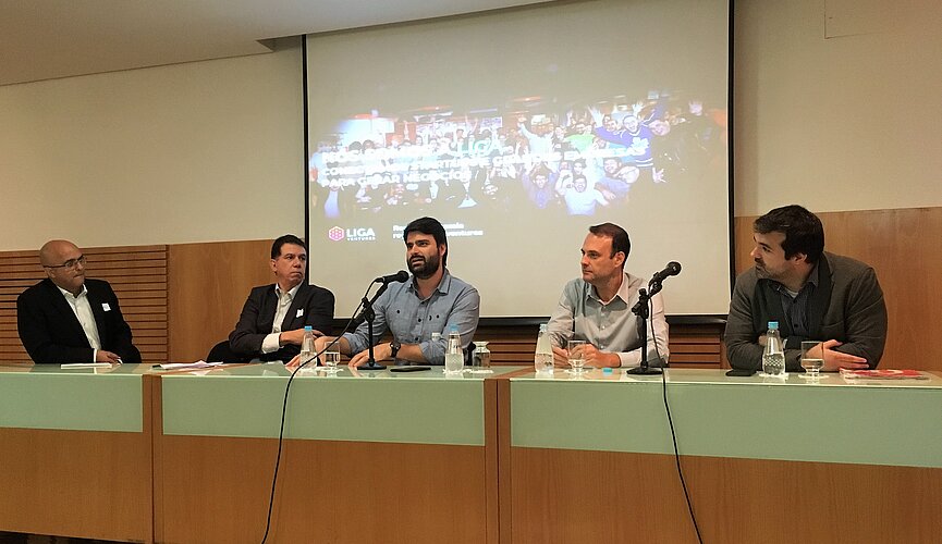 "No dia 21/03/19 foi realizado o Workshop com o tema “Como atuam as aceleradoras corporativas para potencializar inovações em grandes empresas em parceria com startups”, que trouxe a experiência com o desenvolvimento de negócios entre startups e grandes empresas, mostrando as questões cruciais envolvidas nesse relacionamento. Foi apresentado por Arthur Garutti, sócio cofundador ACE, um dos maiores hubs de investimentos em startups e inovação da América Latina e por Rogério Tamassia, sócio e cofundador da Liga Ventures, aceleradora corporativa que ajuda grandes empresas a criarem programas de inovação aberta junto à startups. O evento foi coordenado pelo aluno José Rochetti e pelo Prof, Dr. Alexandre Nabil Ghobril."