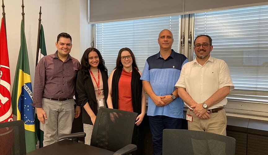 Na oportunidade foi abordado sobre as mudanças que tem acontecido no papel das universidades em relação a integração do aluno com o mercado de trabalho e as tendências que estão surgindo em relação a isso. Nathália explicou em qual etapa da implantação do sistema estamos, que a UNAERP optou por uma transição escalonada, onde o sistema foi utilizado inicialmente como banco de dados, e que o próximo passo será a implantação completa e utilização de todas as ferramentas. Comentou ainda, como essas orientações e relatos de experiencia adquiridos nesta conversa vão contribuir para um planejamento mais efetivo da finalização da implantação do sistema, dos novos processos e do relacionamento com o fornecedor. Participaram da reunião, a mestranda Nathalia Bonini, a mestranda Vitória Lamar, também discente do mestrado e colaboradora da Mackenzie como assistente de processos na CPLAN, o Prof. Marcelo Santos, coordenador do setor de estágios e o colaborador Cassio Nascimento, que é o encarregado do departamento.