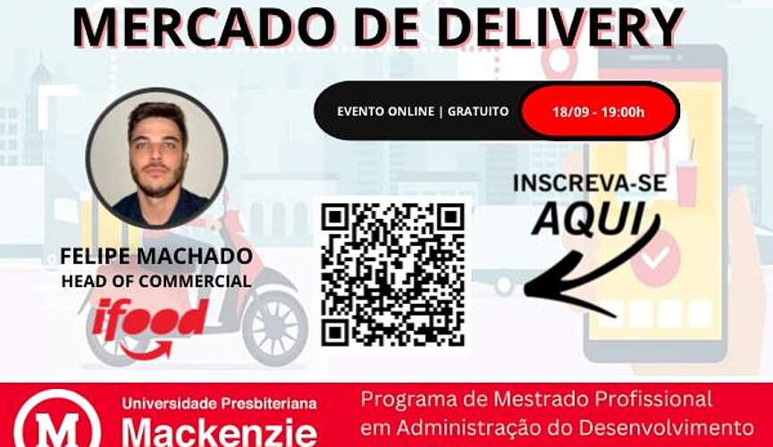 O Programa de Mestrado Profissional em Administração do Desenvolvimento de Negócios da Universidade Presbiteriana Mackenzie promoveu a Atividade Programada Obrigatória "O Mercado de Delivery", de forma online no dia 18 de setembro de 2025. O evento contou com a participação de mais de trinta pessoas, entre alunos, professores e profissionais do mercado. A atividade integra o calendário acadêmico com o objetivo de discutir a realidade do mercado contemporâneo.