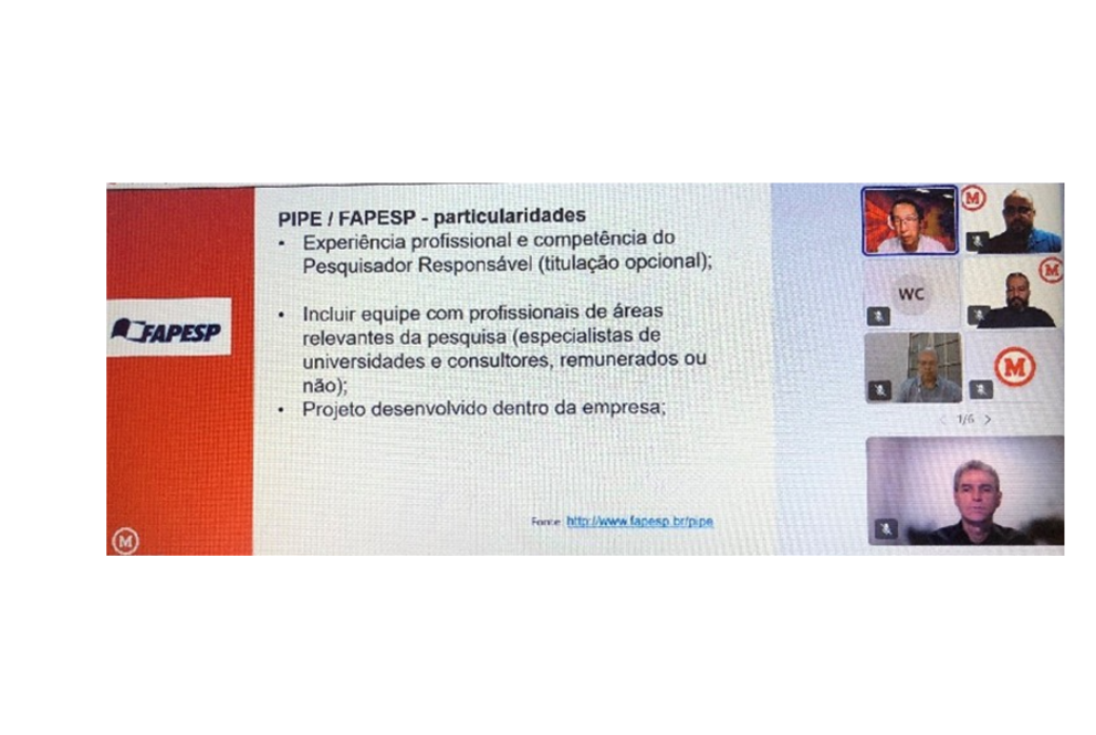 No dia 26 de março de 2025, às 19h, foi realizada a oficina "Conheça PIPE FAPESP – Programa Governamental de Fomento para Desenvolvimento de Negócios Inovadores", no formato online, a qual integrou a grade de Atividades Programadas Obrigatórias (APO) do Programa de Mestrado Profissional em Administração do Desenvolvimento de Negócios da Universidade Presbiteriana Mackenzie. O evento teve como objetivo apresentar à audiência as oportunidades de financiamento oferecidas pelo Programa FAPESP de Pesquisa Inovativa em Pequenas Empresas (PIPE), destacando seu papel no estímulo à inovação e no fortalecimento do ecossistema empreendedor.