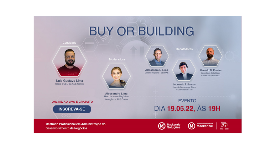 No último dia 19/5, o Mestrado Profissional em Administração do Desenvolvimento de Negócios contou com a presença do Sócio e CEO da ACE-Cortex, Luis Gustavo Lima, que nos brindou com uma brilhante palestra sobre "Buying or Building". O evento foi organizado pelos mestrandos do MPADN, Alessandra Lima (ACE-Cortex), Alessandro Lima (SEBRAE), Haroldo Pereira (Bradesco) e Leonardo Soares (Tim).