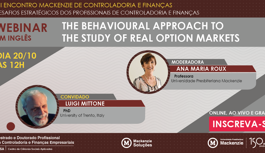 "O Programa de Pós-Graduação em Controladoria e Finanças Empresariais tem a honra de convidá-lo(a) para o  XII Encontro Mackenzie de Controladoria e Finanças que acontecerá entre os dias 18 e 22 de outubro, de forma on-line, com o tema Desafios Estratégicos dos Profissionais de Controladoria e Finanças."