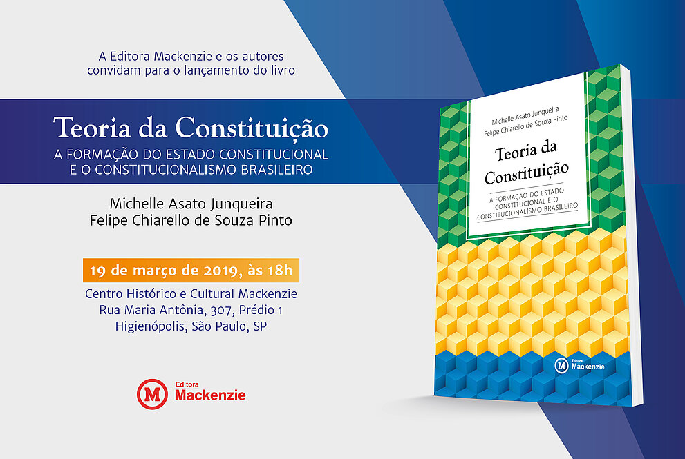 No dia 19 de março, o Centro Histórico e Cultural Mackenzie (CHCM) recebe, às 18h, o lançamento do livro Teoria da Constituição - a formação do Estado Constitucional e o constitucionalismo brasileiro. A obra, de autoria de Michelle Asato Junqueira, professora da Faculdade de Direito (FDir) da Universidade Presbiteriana Mackenzie (UPM), e de Felipe Chiarello de Souza Pinto, diretor da FDir, será lançada pela Editora Mackenzie no CHCM, campus Higienópolis, com sessão de autógrafos.