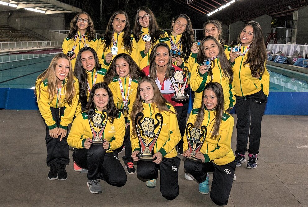 Vestidas com o conjunto de moletom preto e vermelho, característico dos atletas mackenzistas, as meninas do nado sincronizado do Colégio Presbiteriano Mackenzie Brasília se destacavam em meio às arquibancadas do III São Paulo Open de Nado Artístico.
