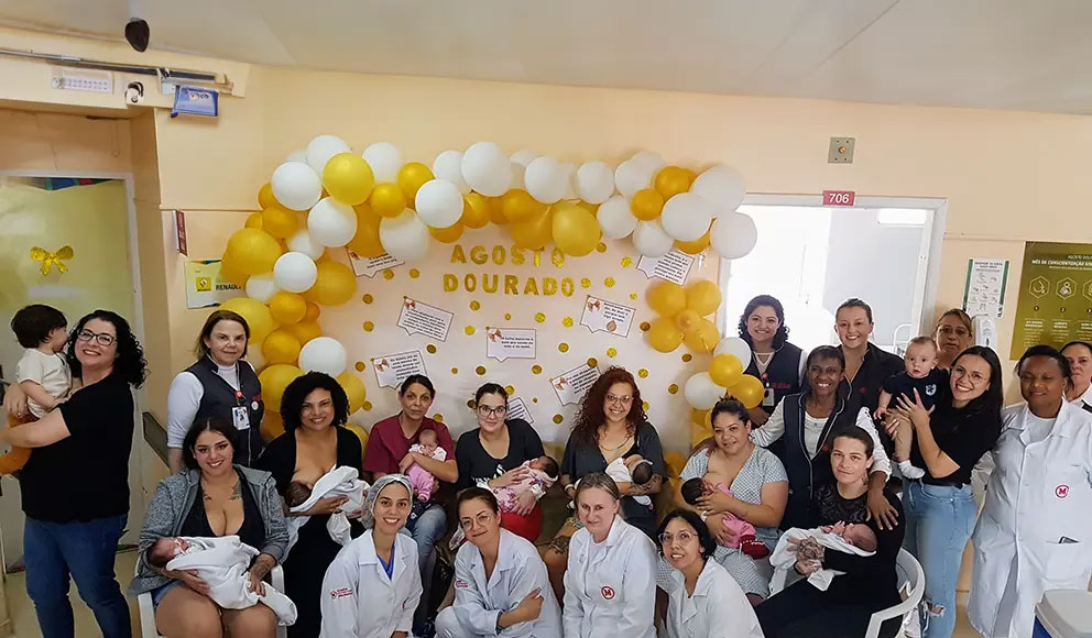 Com o objetivo de conscientizar a sociedade sobre os benefícios do aleitamento materno, o Hospital Universitário Evangélico Mackenzie (HUEM) promoveu uma ação de amamentação coletiva, em 7 de agosto, para fechar com chave de ouro a Semana Mundial de Incentivo à Amamentação. A ação, que faz parte do Agosto Dourado, aconteceu no alojamento conjunto e contou com a participação de colaboradoras do HUEM, de mães que tiveram seus partos no Hospital e de mães de recém-nascidos que estão na UTI neonatal. A coordenadora do Banco de Leite Humano (BLH) do HUEM, Ana Lúcia dos Anjos, e a equipe da Unidade Materno-Infantil organizaram um espaço onde várias mulheres se reuniram para amamentar ao mesmo tempo.