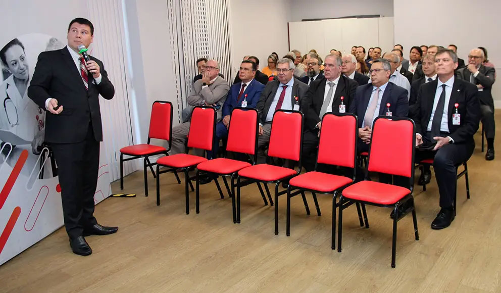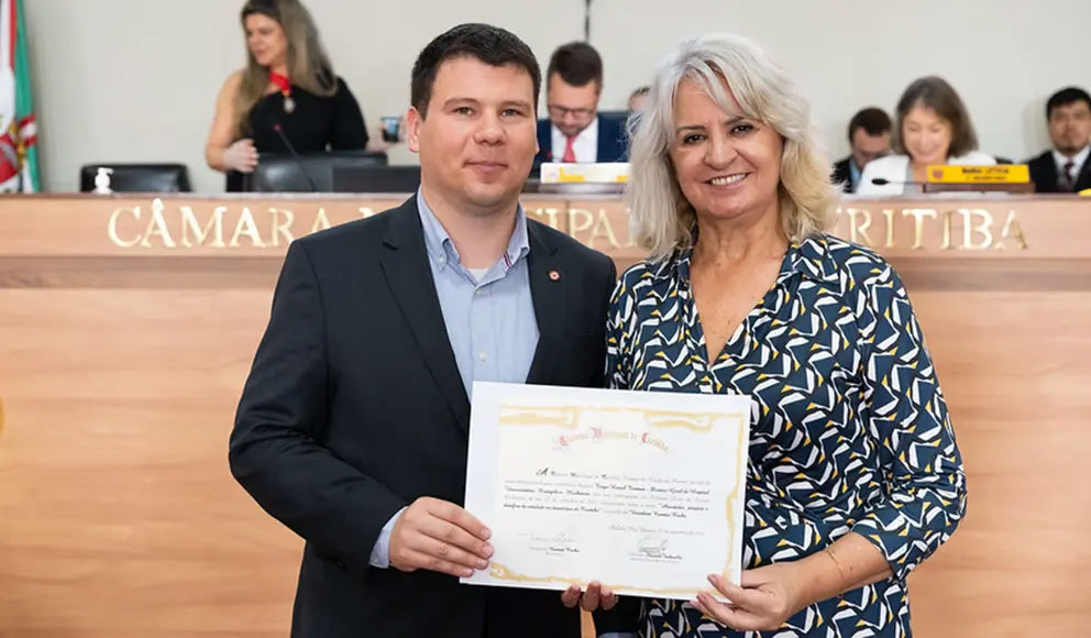 Em 27 de setembro, o diretor-geral do HUEM, Dr. Tiago Tormen, discursou na Tribuna Livre da Câmara Municipal de Curitiba sobre as realizações e os desafios da Instituição na busca por melhorias contínuas no atendimento hospitalar à comunidade. O convite foi feito pela vereadora Noemia Rocha, que, na abertura dos trabalhos, destacou os avanços alcançados pelo HUEM. “Somos um Hospital de ensino, com vocação para atender pelo Sistema Único de Saúde, conforme sempre enfatizam nossos mantenedores. Temos muitos parceiros aqui nessa casa que nos auxiliam com emendas parlamentares que são importantíssimas para conseguirmos prestar o melhor serviço à população”, salientou Tormen, para, então, apresentar a estrutura do HUEM e a extensa lista de melhorias implementadas desde que o IPM assumiu a gestão.