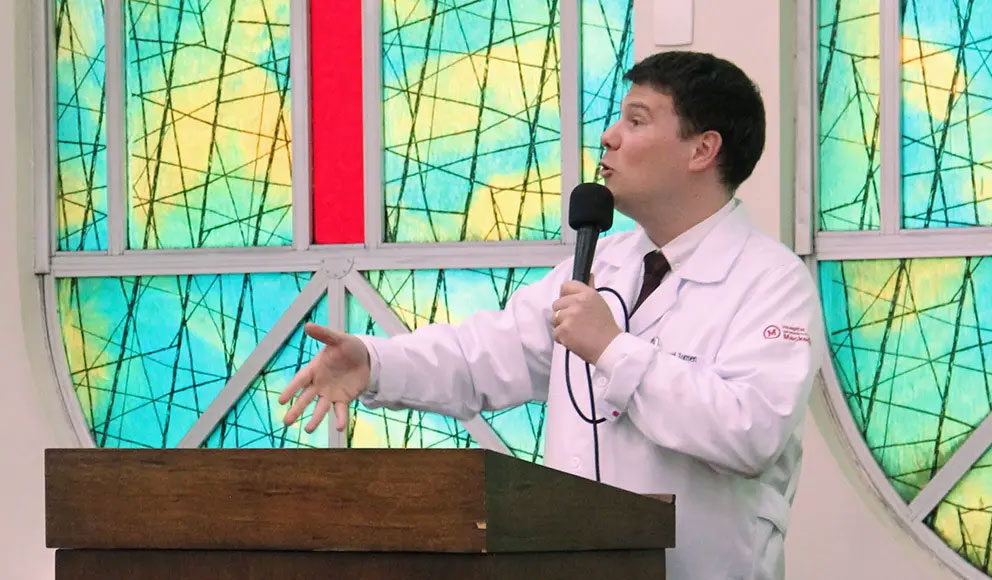 Dezoito de outubro é uma data especial para o HUEM, quando são comemorados o Dia do Mackenzista e o Dia do Médico. Para celebrar, o HUEM realizou o Culto de Ação de Graças, permeado por cânticos e palavras inspiradoras. O pregador foi o antigo diretor-geral da Instituição, Dr. Rogério Donato Kampa. A abertura do culto foi realizada pelo capelão Francisco Creti Neto. Em seguida, o capelão reverendo Marcelo Pinheiro e a auxiliar de Capelania, irmã Elenice Barros, conduziram as orações. O evento também contou com a apresentação do coral do HUEM, ao passo que o encerramento foi realizado pelo atual diretor-geral do Hospital, Dr. Tiago Tormen, que homenageou todos os médicos da Instituição, além dos demais profissionais, que juntos fazem o HUEM ser uma das mais importantes instituições de saúde do estado do Paraná.