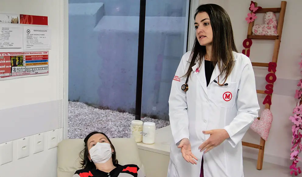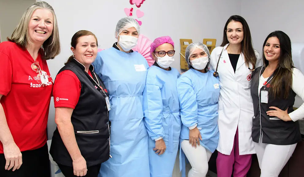 O HUEM realizou em 18 de outubro uma atividade referente ao Outubro Rosa — mês dedicado à campanha de prevenção ao câncer de mama e à saúde da mulher — que contou com a participação de vinte mulheres, entre pacientes e acompanhantes. A médica oncologista Dra. Emanuella Benevides Poyer ministrou uma palestra para as mulheres e acompanhantes na sala de infusão do Centro de Oncologia Mackenzie (COM). Ela apresentou informações relevantes para as presentes, como a importância do diagnóstico precoce, o acompanhamento nutricional durante o tratamento e a prática de atividades físicas na medida do possível. O evento também proporcionou um espaço seguro para as participantes tirarem dúvidas e compartilharem experiências. Foram realizadas também palestras sobre o tema no dia 3, com a oncologista dra. Maria Cristina Figueroa Magalhães; e no dia 23, com o oncologista Dr. Raphael Alves Garcia.
