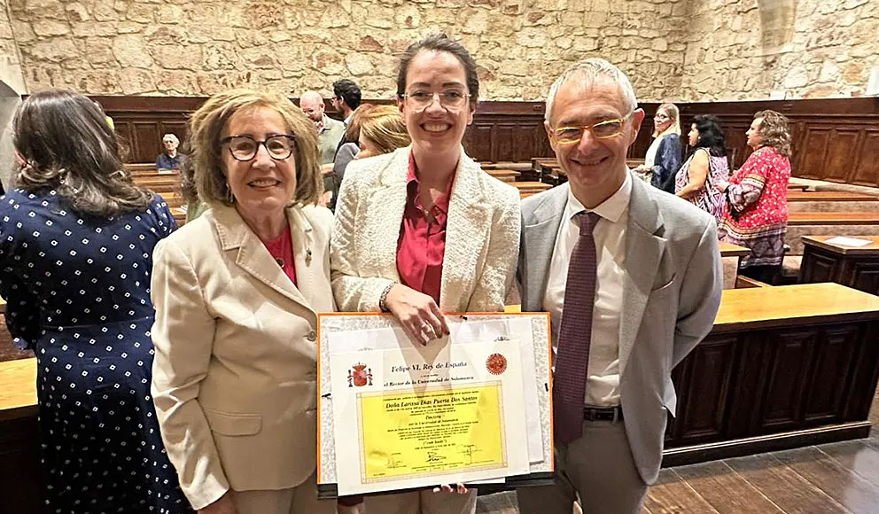 A professora Larissa Dias Puerta de Miranda Freire, coordenadora do curso de Direito da UPM campus Alphaville, cumpriu missões acadêmicas na Universidade de Salamanca, na Espanha, no evento “Justicia y Derecho en el actual contexto iberoamericano”. Durante o congresso, docentes brasileiros e espanhóis participaram de mesas de debates na histórica sala Miguel de Unamuno, local em que a coordenadora palestrou e apresentou os resultados da pesquisa “Evolução das técnicas e dos procedimentos idealizados para a melhoria dos indicadores e do desempenho da educação jurídica no Brasil”, em comparação ao modelo espanhol de avaliação da educação jurídica. Na ocasião, a professora recebeu das mãos do reitor da Universidade de Salamanca, Ricardo Rivera Ortega, seu diploma de doutora pela instituição, obtido no marco de convênio de cotutela e dupla titulação entre Salamanca e a UPM.