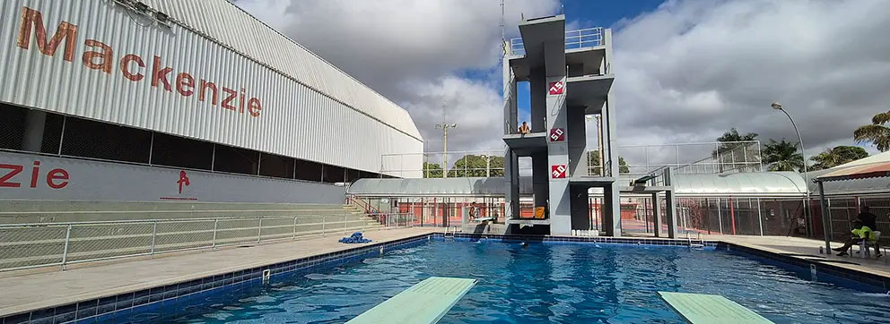 Brasília Entre os dias 9 e 12 de maio, o Colégio Presbiteriano Mackenzie de Brasília recebeu o Campeonato Brasileiro de Saltos Ornamentais e a Copinha Brasil, da mesma modalidade. A competição reuniu atletas de várias regiões do país para disputar diferentes modalidades. O evento revela futuros atletas para representar o Brasil em torneios internacionais, como os mundiais e as Olimpíadas. O Mackenzie destaca-se por ser o único colégio de Brasília com estrutura adequada para sediar um campeonato de tal magnitude. Esse destaque é fruto do apoio fundamental do único atleta olímpico da cidade, o professor e treinador César Castro.