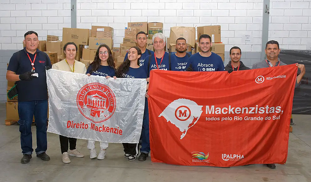 A comunidade do Mackenzie uniu-se nas campanhas Em Nome da Vida e SOS Rio Grande do Sul para arrecadar doações destinadas às pessoas atingidas pelas graves enchentes que afetaram o estado no Sul do Brasil. Até meados de maio, já haviam sido arrecadadas mais de 10 toneladas de donativos, entre garrafas de água mineral, alimentos não perecíveis, roupas, itens de higiene pessoal e de limpeza, ração para pets e brinquedos. O encaminhamento se deu por meio da Igreja Presbiteriana de Canoas. As campanhas resultam da união de forças do Instituto Presbiteriano Mackenzie (IPM), da Universidade Presbiteriana Mackenzie (UPM), do Diretório Central dos Estudantes (DCE), das Atléticas, dos Centros Acadêmicos, das baterias e comissões de formatura de diversos cursos.