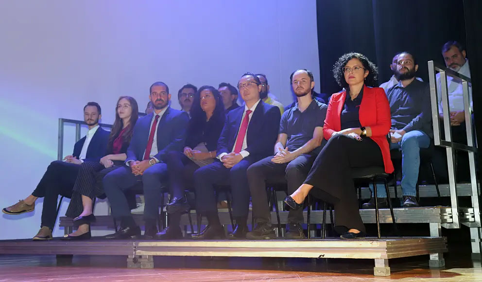 Além do coordenador de Extensão da EE, professor Delmárcio Gomes, o evento contou com as presenças do pró-reitor de Graduação, Marcos Nepomuceno Duarte; a pró-reitora de Pesquisa e Pós-Graduação, Maria Cristina Teixeira; o reitor da UPM, Marco Tullio de Castro Vasconcelos; o pró-reitor de Extensão e Cultura, Cleverson de Almeida; diretores de outras unidades acadêmicas; e representantes das empresas participantes.