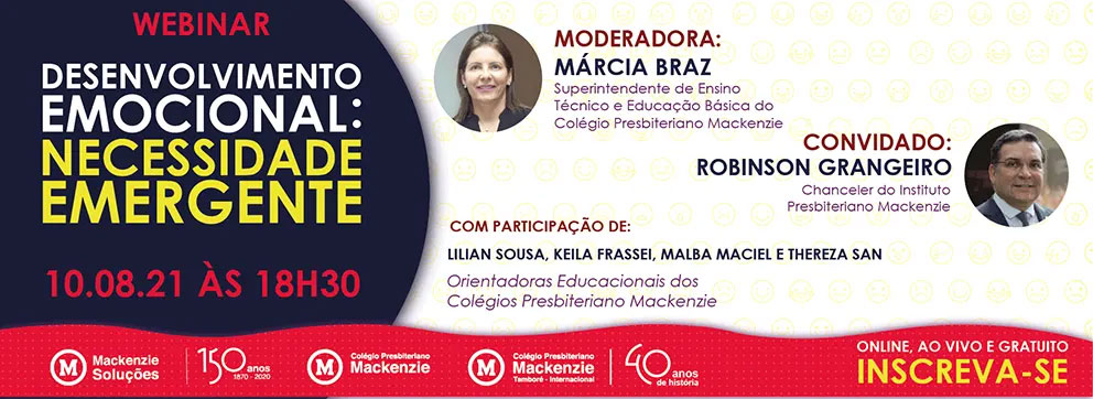 Como parte da comemoração de seus 40 anos e dos 150 anos do Mackenzie, o CPM Tamboré promoveu, em 10 de agosto, o webinar Desenvolvimento emocional: necessidade emergente. Realizado pelo Mackenzie Soluções, área de negócios do IPM, o evento discutiu as novas demandas emocionais de crianças e adolescentes surgidas em decorrência da pandemia do coronavírus e que afetaram diretamente o processo de aprendizagem, alterando o formato de ensino e desenvolvimento educacional. Foram apresentadas, ainda, as ações desenvolvidas pelas unidades dos Colégios para amenizar o impacto na educação, como o apoio oferecido pela Instituição aos alunos, pais e professores, garantindo a qualidade do aprendizado e a estrutura emocional.