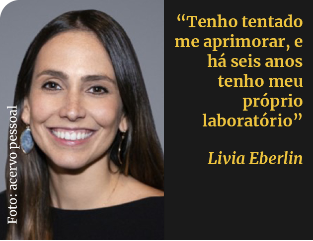 Livia Eberlin, 35, teve no pai — pesquisador mundialmente reconhecido na área de Química — uma grande influência para escolher a carreira. Na infância, foram muitas as vezes que ficou na faculdade onde ele trabalhava, esperando terminar o expediente para voltarem juntos para casa. Ali, a menina começou a se encantar com a vida nos laboratórios, ambiente que alimentava sua natural curiosidade sobre todas as coisas. Livia sempre quis investigar, descobrir e entender como as coisas funcionavam. Na escola, empolgava-se com as aulas de Matemática, Biologia e Química, e optou por esta última quando chegou o vestibular.