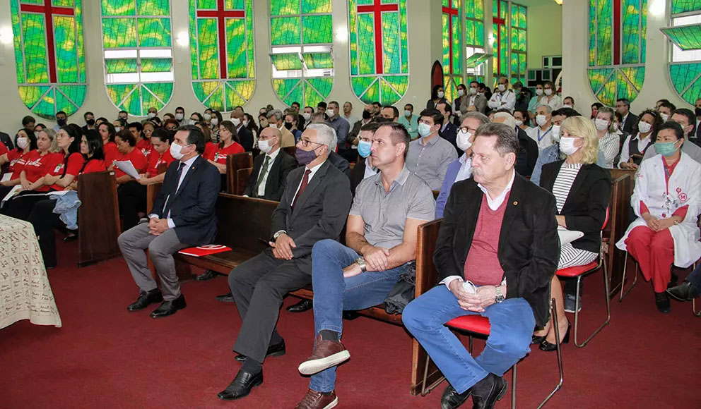 “A Páscoa é uma das maravilhosas celebrações cristãs, na qual celebramos a vida. Esses dois anos de pandemia foram de muita luta para todos aqui no hospital. Foram momentos difíceis em que aprendemos ainda mais a valorizar a vida. Nossa missão de salvar vidas e cuidar das pessoas é uma dádiva de Deus”, disse na abertura do culto o diretor-geral do HUEM, Dr. Rogério Kampa.