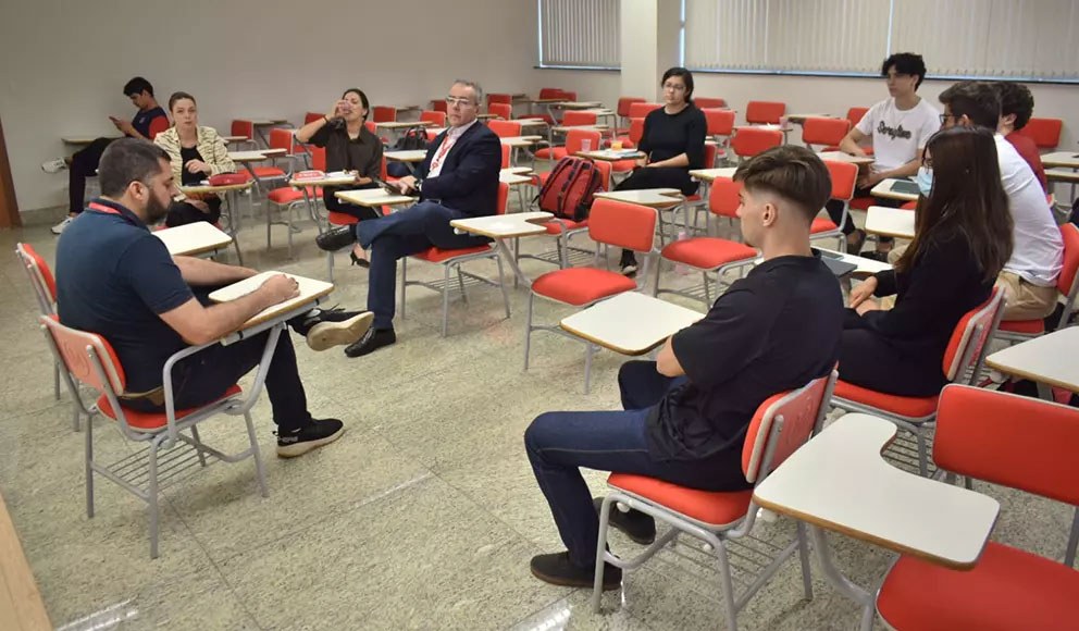 Em 4 de maio, os representantes das turmas do curso de Direito se encontraram com o diretor da FPMB, professor Mac Cartaxo, para uma conversa sobre as diretrizes que farão parte do ano letivo. Cartaxo apresentou a forma como será organizada a formação que contará agora com a atuação no Núcleo de Práticas Jurídicas em todos os semestres. O projeto, que tem como obrigatória a participação em 400 horas do curso, presta atendimento gratuito à comunidade na solução de dúvidas e no auxílio com processos na Justiça. O diretor anunciou, ainda, as novidades da Faculdade na modernização do ensino e no aprimoramento das instalações com novos e completos equipamentos. Uma das notícias foi a aquisição de uma torre eletrônica para o carregamento de celulares em cada sala. Dentre as boas novas está, ainda, a implementação do simulador de Processo Civil Eletrônico. O Mackenzie é a única faculdade do Distrito Federal a ter uma plataforma interativa para a representação de Prática Simulada Civil e Trabalhista. Outros temas debatidos no encontro foram a preparação para a prova da Ordem dos Advogados do Brasil (OAB), atividades extraclasse e os programas de Mentoria Acadêmica, Monitoria e o Mackenzie Voluntário, que propõem a participação em iniciativas de benefício social para a prestação de serviços e demais ações para grupos carentes.