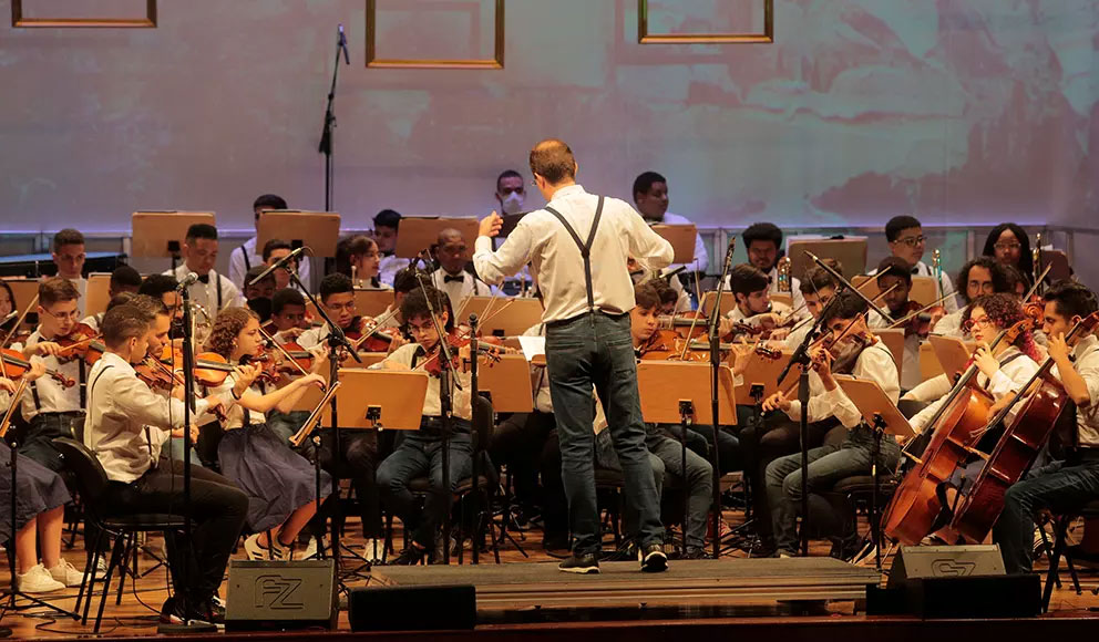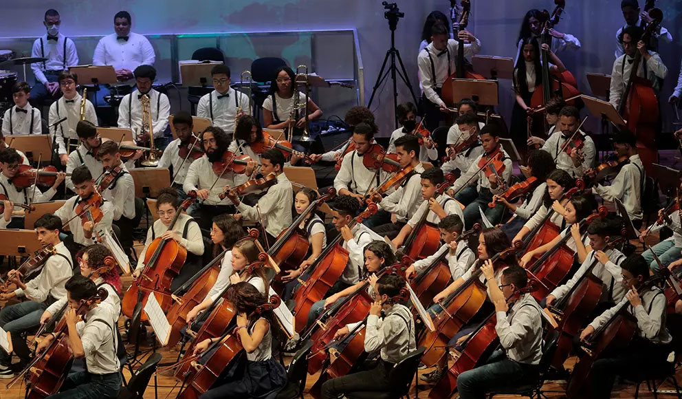 Em 8 de junho, em comemoração aos seus 70 anos, a UPM recebeu a Orquestra Locomotiva, que apresentou o espetáculo O sol da liberdade, no auditório Ruy Barbosa, campus Higienópolis. Com aproximadamente 130 jovens músicos e alunos do Projeto Locomotiva, o espetáculo celebrou os 200 anos de independência do Brasil e os 100 anos da Semana de Arte Moderna de 1922, evento que iniciou o movimento modernista em diferentes campos, como a pintura, a literatura e a música. No dia seguinte, a Orquestra também se apresentou no campus Campinas da UPM. O reitor da UPM, Marco Tullio de Castro Vasconcelos, ressaltou quão importante é este ano para a Universidade. “Estamos elaborando um conjunto de eventos para este ano especial, os 70 anos da UPM, um ano rico em comemorações”, finalizou. O Projeto Locomotiva, idealizado pelo maestro Rogério Schuindt, é uma associação sem fins lucrativos que assiste, por meio do ensino da música, crianças e adolescentes de 7 a 17 anos com alta vulnerabilidade social das cidades de Santo André, Mauá e São Paulo. Atualmente são mais de 500 alunos. Para assistir à apresentação, clique aqui.