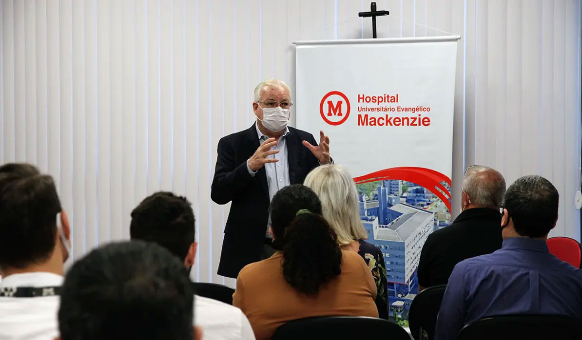 O Hospital Universitário Evangélico Mackenzie (HUEM) recebeu vereadores de Curitiba em um café da manhã, em 18 de novembro. Os parlamentares e representantes foram recebidos pelo diretor-geral do hospital, doutor Rogério Kampa. “Precisamos de ações do poder público em suas três esferas para auxiliar os hospitais a superarem as dificuldades. Contamos com a parceria da Câmara Municipal, que sempre esteve aberta ao bom diálogo, para que não tenhamos um cenário complicado para a população no ano que vem”, disse Kampa. A presidente da Comissão de Saúde, Bem-Estar Social e Esporte, vereadora Noemia Rocha, destacou o papel do HUEM na saúde de Curitiba e se colocou à disposição para ajudar.