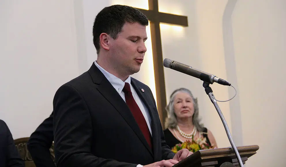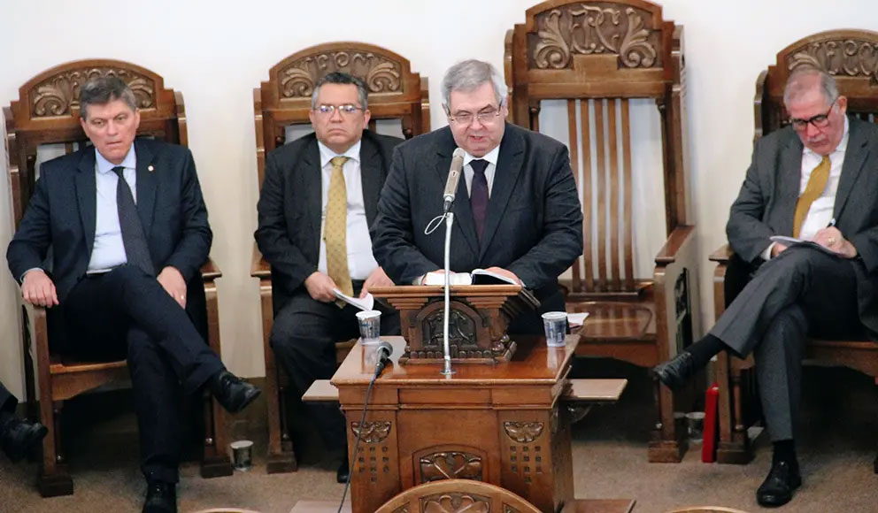 Dr. Tiago Tormen leu seu termo de compromisso e posse: “Com a ajuda de Deus prometo desempenhar fielmente a função de diretor-geral do Hospital Universitário Evangélico Mackenzie para a qual fui nomeado. Esforçando-me para que os objetivos propostos e aprovados sejam alcançados em ambiente de fé cristã reformada, fundamentada na Bíblia Sagrada e com lealdade à Igreja Presbiteriana do Brasil”.